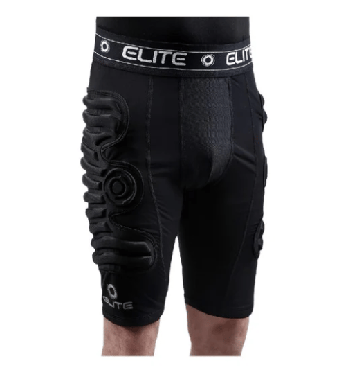 Elite Bad Compression Shorts are specially designed athletic wear crafted from a unique polyester/Lycra blend. This blend creates a comfortable yet firm fit that supports the muscles during activity. The shorts feature proprietary materials that ensure exceptional durability, even during the most aggressive play. Reinforced with 7 mm polyurethane impact padding, they provide crucial hip protection, allowing athletes to focus on their game without worrying about potential injuries.